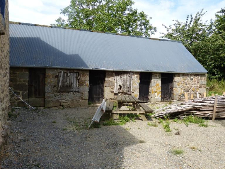Cette ferme est composée de trois bâtiments principaux. Le bâtiment situé au nord abrite le logis et l'étable. Ce bâtiment est construit en moellon de granite et la partie supérieure des murs est en terre. Les baies possèdent des linteaux de bois et des encadrements de granite. Le bâtiment situé au sud-ouest abrite une grange, une pierre du chaînage d'angle de ce bâtiment porte la date de 1797. Ce bâtiment est construit totalement en moellon de granite. Au nord-est du logis, se trouve un petit bâtiment en moellon de granite avec une tête de pignon en pan de bois qui abrite les anciennes porcheries et le fournil.
