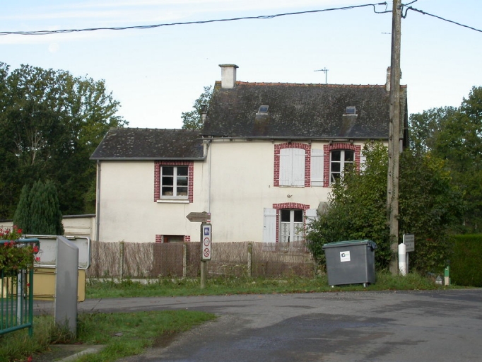 Cette maison est enduite et possède une toiture à longs pans couverte d'ardoise. Sa façade est percée de deux travées composées de baies à encadrements de brique.