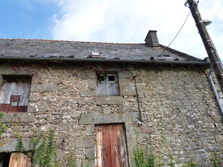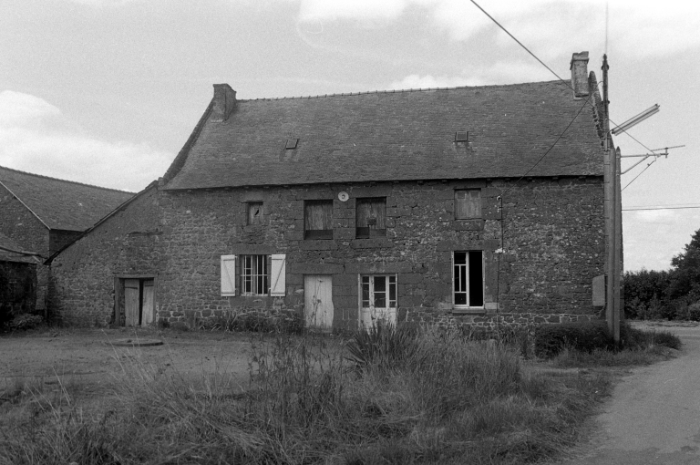 Cette ferme est élevée en moellon de granite et couverte d'ardoise. Les baies possèdent des encadrements de pierre de taille de granite. Le rez-de-chaussée est percé de deux portes jumelées à linteaux droits ; celles-ci sont surmontées de deux portes hautes. L'une des baies de l'étage possède un linteau décoré d'une accolade. La souche de cheminée surmontant le pignon est porte la date de 1718.