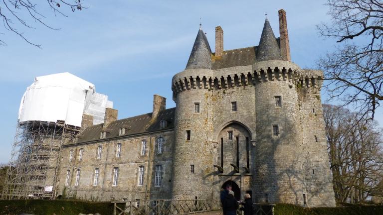 Ce fief est confié par l’abbesse au chevalier Donoual, à charge pour lui de construire un château fort pour défendre ses terres. Le premier château en bois fut pris en 1156 par le duc Conan IV à la tête d’une troupe anglaise et détruit en 1168 par Henri II Plantagenêt, roi d’Angleterre. Ce dernier le remplace par une véritable forteresse qui est agrandie et renforcée au XIVe siècle.