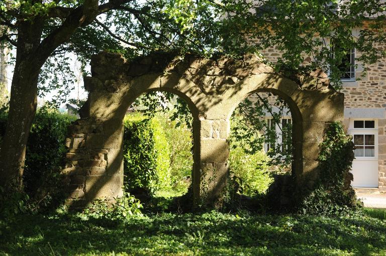 Le grand cèdre du Liban qui ombrage la cour arrière a été planté vers 1860. La double arcade qui est sous le cèdre provient du village de l'Hourre, de la grange seigneuriale où était conservé les grains que les habitants du lieu donnaient au Seigneur de Fougères à titre d'impôt. Elle daterait du 11e siècle. Cette porte était autrefois sur le terrain de la ferme qui porte aujourd'hui ce nom.