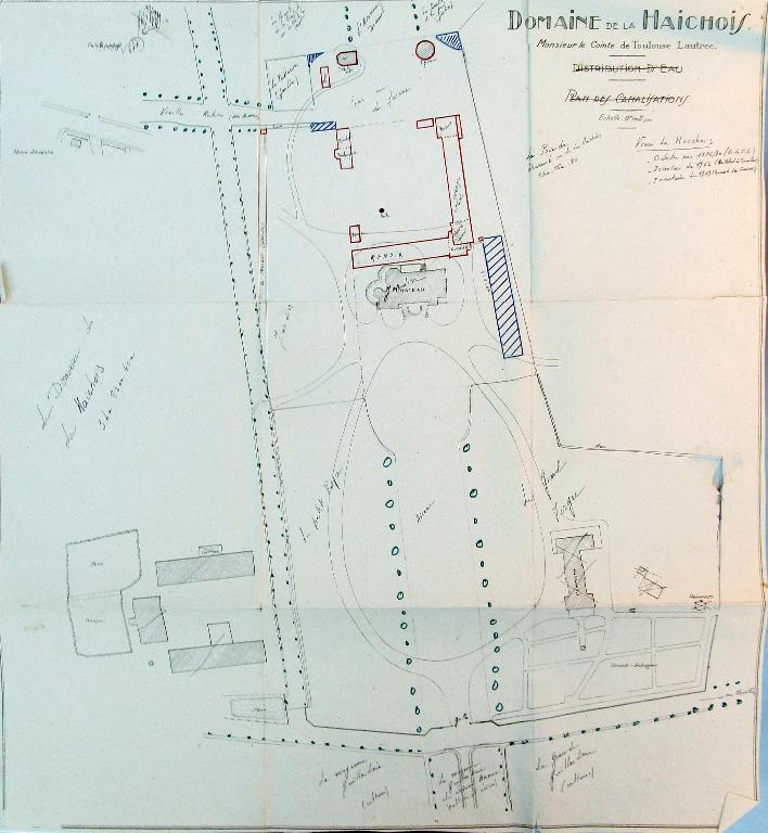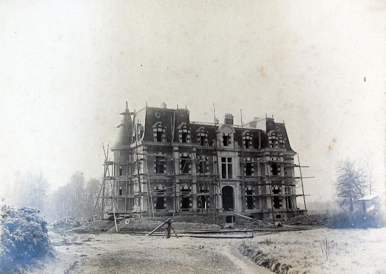 Sur le site ancien d'un édifice détruit, un château neuf est construit en 1888 par l'architecte Ambroise Baudry pour le comte de Toulouse-Lautrec et son épouse, Emilie de la Haichois. L'architecte et décorateur réalise en particulier l'intégration de lambris du XVIIe siècle provenant de l'ancien château dans le grand salon ainsi qu'un fumoir d'inspiration orientale. Le fumoir constitue à ce jour le seul exemple conservé du travail de coloriste de Baudry. Les lambris du hall d'entrée et de la cage d'escalier, ainsi que certaines portes, intègrent également plusieurs panneaux anciens en bois sculptés de motifs gothiques ou Renaissance. Jean-Marie Huchet, entrepreneur à Rennes, est chargé des travaux. La chapelle construite autour de 1680 (datée par travaux historiques) et le colombier de même époque sont conservées au sud du château. Les écuries sont construites peu avant le château ; le parc à l'anglaise, la ferme et un potager clos de murs de terre sont également entrepris à cette période.
