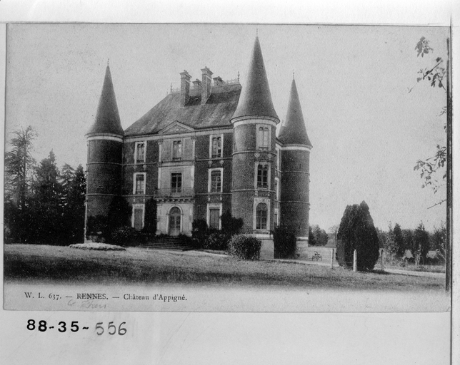 Le château est construit au cours de la 1e moitié du 19e siècle au nord ouest de l'ancien château d'Apigné dont ne subsiste qu'une motte féodale, près de la Vilaine. (Elise Lauranceau - 2004)
