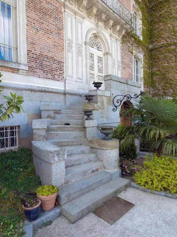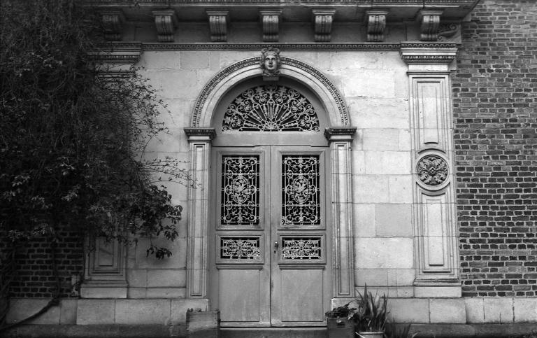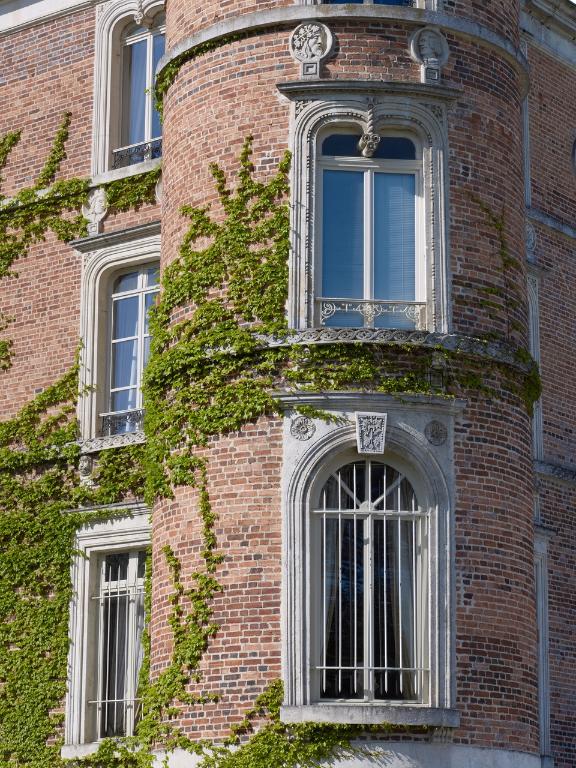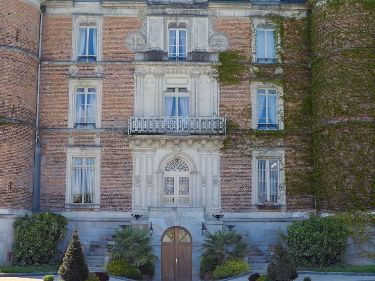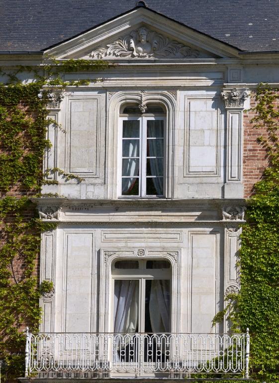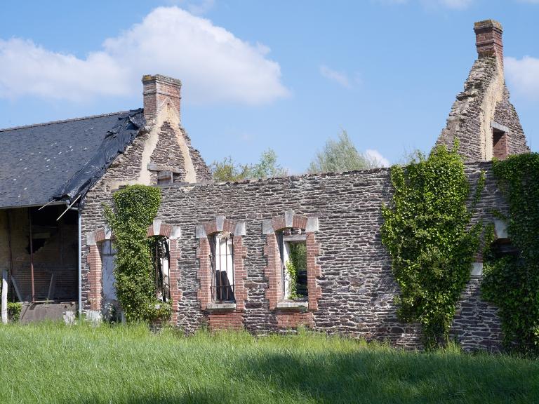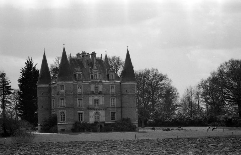 Important bâtiment de plan rectangulaire cantonné de quatre tours circulaires. Élévation en brique sur soubassement de granite avec calcaire en pierre de taille pour les encadrements de baies, les bandeaux, la corniche et le fronton. Le corps de logis est couvert d'un toit à croupe, les tours en poivrière. 3 travées principales, celle de l'entrée au centre est marquée par un appareil de pierre de taille de calcaire, la superposition de 3 niveaux de pilastres et d'un fronton triangulaire se détachant sur le toit. Porte à imposte cintrée ; balcon au 1er étage. Les baies des tours sont munies d'une clé pendante. Ornementation riche et soignée notamment autour des ouvertures et sur la travée axiale. Intérieur remanié en appartements. (Elise Lauranceau - 2004)