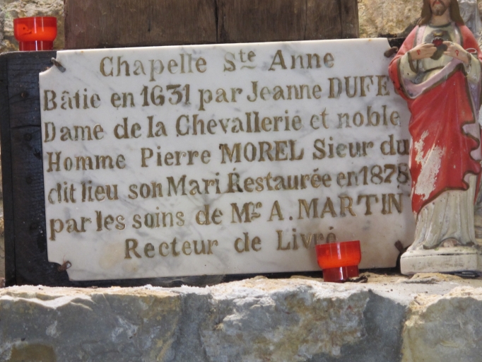 Cette chapelle date du second quart du 17e siècle, sa date de construction (1631) est en effet portée sur un claveau de la porte d'entrée. Elle a été édifiée par Jeanne DUFEU, dame de la Chevalerie et son époux Pierre MOREL, bourgeois de Vitré. Elle dépendait du manoir de la Chevalerie, aujourd´hui disparu. Il existait autrefois un manoir à la Chevalerie, il appartenait aux de Lescouët en 1502, aux du Feu en 1638, aux Cochet en 1722 et aux Blot en 1789. C'est la famille du Feu qui fit ériger cette chapelle. Le manoir consistait en une maison principale, des écuries, un four, une cour, des jardins, un verger, un bâtiment abritant le pressoir, une grange, un vivier, des douves et de nombreuses pièces de terre qui couvraient une surface de 95 journaux, soit un peu moins de 50 hectares. On sait grâce à certains aveux que la Quintaine (jeu d'adresse consistant pour un homme à cheval à percuter avec sa lance tendue un écu seigneurial surmontant un mât fixe ou rotatif) se déroulait à la Chevalerie. La chapelle devient frairienne (frairie : subdivision de paroisse) au cours du 18e siècle. En 1753, une relique de sainte Anne aurait d´ailleurs été déposée dans cette chapelle. Elle a été restaurée à la fin du 19e siècle (1878) par A. MARTIN, recteur de Livré-sur-Changeon. A cette époque, une niche à jour céleste a été créée sur le chevet. A la fin du 19e siècle, cette chapelle était un lieu de pèlerinage important.