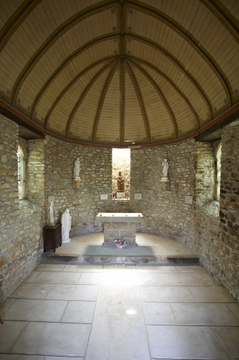 Cette chapelle est construite en moellon de grès ; seuls les encadrements de baies sont traités en pierre de taille de granite. Elle présente un plan allongé à vaisseau unique ; le chevet possède une niche à jour céleste. La nef est couverte d´une voûte en bois peint. A l´intérieur, il existait deux statues contemporaines de la construction de la chapelle (2e quart du 17e siècle) : une Vierge à l´Enfant en terre cuite polychrome et un saint Joseph et l´Enfant en bois polychrome. Ces deux statues se trouvent désormais dans l´église paroissiale. Une autre statue en bois du 17e siècle se trouve dans la niche percée au sommet du pignon ouest, elle représente l´Éducation de la Vierge. Actuellement, il existe encore à l´intérieur de cette chapelle plusieurs statues en plâtre moulé de la fin du 19e siècle : Vierge à l´Enfant, Sacré Cœur, saint Jean-Baptiste. Ces statues datent de l´époque de restauration de la chapelle, c´est-à-dire des années 1870-1880.