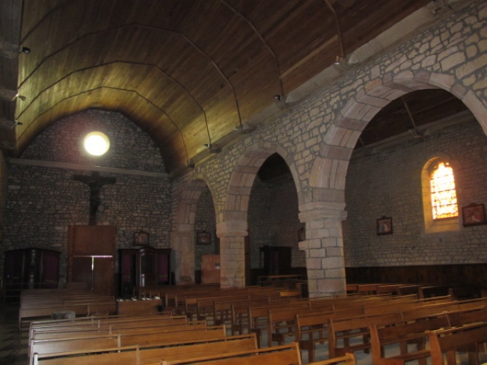 Le clocher est incendié en 1795, il est probablement reconstruit en 1801 en même temps qu'une campagne de travaux pour la façade ouest (date portée). A la fin du 19e siècle, le pignon du bras sud est reconstruit et une sacristie d'axe est ajoutée.