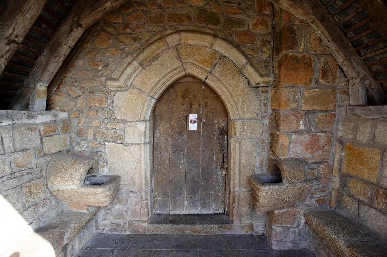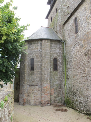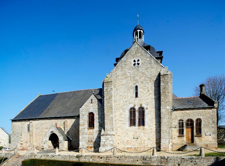 Au 15e siècle, on refait la porte sud et son porche et l'élévation de la façade ouest doublée ultérieurement au 16e siècle lors de l'édification du collatéral nord. De cette époque date aussi la réfection de trois des arcades de la croisée qui portent les armoiries de la famille du Pontavice.