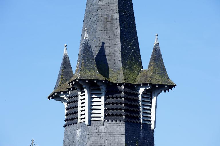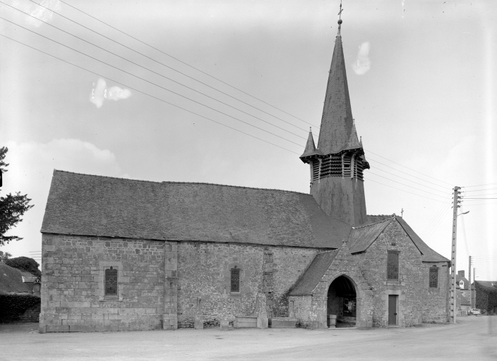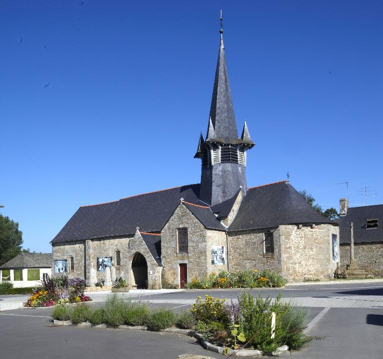 Typologiesclocher en haut de nef ; chevet à pans coupés ; porche latéral ; croix latine