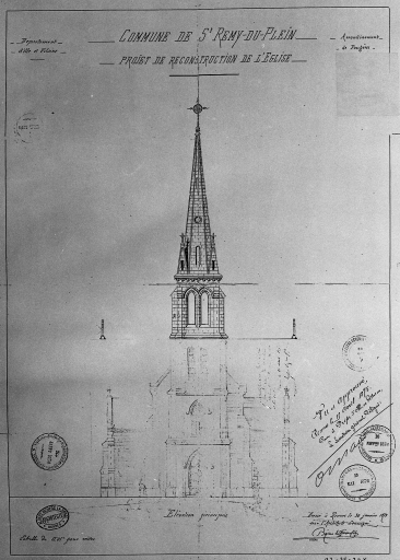 A. D. Ille-et-Vilaine. Série O : Administration et comptabilité communales. Edifices publics. Monuments et établissements publics. Saint-Rémy-du-Plain. Eglise (1873-1904) : 2 O 311 /14 ; 24 ; 25.