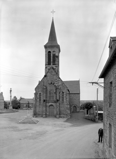 L'église Saint-Martin présente un plan en croix latine à vaisseau unique. Elle est construite en granite et couverte d'ardoise. Son style néo-roman est caractéristique de cette deuxième moitié du 19e siècle, époque à laquelle de nombreuses églises sont reconstruites en remplacement d´églises en état de vétusté. L´entrée de l´église se trouve au nord. Le portail est surmonté d´une baie en plein cintre elle-même flanquée de deux baies plus étroites. Deux fins contreforts en granite rythment et soutiennent la façade. A droite de la porte, une pierre en granite servait autrefois d´estrade pour le garde champêtre, chargé chaque dimanche matin de proclamer les informations de la commune aux habitants. Les façades est et ouest sont percées de trois baies, une éclairant la nef, une le transept et une le chœur. La partie basse de la nef est également soutenue par de fins contreforts en granite. Des tirants métalliques participent au renforcement de la construction. Ils sont visibles à l´extérieur et à l´intérieur de l´église. Les portes donnant sur le transept proviennent de l'ancienne église. De style gothique, elles datent de la rénovation de l'église aux 15e et 16e siècles. La porte située à l'ouest bénéficie d´un décor plus élaboré. Elle est ornée de deux chapiteaux sculptés : un animal d´un côté et un visage de l´autre, tenant dans sa bouche une chaîne et du feuillage. Ce personnage n´est pas sans rappeler l´Ankou, une personnification de la mort dans la tradition bretonne. Le chevet de l´église est plat, s'y adosse la sacristie. La différence d'appareillage et de matériaux (présence de schiste) témoigne d'une construction ultérieure de la sacristie. Le bas de la nef est surmonté d'une tour carrée ouverte sur ses quatre côtés par de longues baies à persiennes. Le clocher polygonal est couvert en ardoise. L´intérieur de l´église a subi de fortes modifications au début des années 1980. Sur des photographies datant de 1977, la nef est surmontée d´une voûte en berceau et la croisée du transept d´une croisée d´ogive. Aujourd´hui ces éléments sont cachés par un lambris. On remarque également en comparant ces photographies que la chaire à prêcher a disparu. Le retable au fond du chœur comporte trois niches en cul-de-four ornées de statues et surmontées de frontons de style Renaissance. Une pierre tombale est visible à l'entrée de la porte située à l'est. Ornée d'une croix et d'une fleur de lys, elle porte la date 1583. Une peinture du 17e siècle représentant une descente de croix est présentée au fond du chœur, à gauche. Cette peinture a été restaurée en 1997.