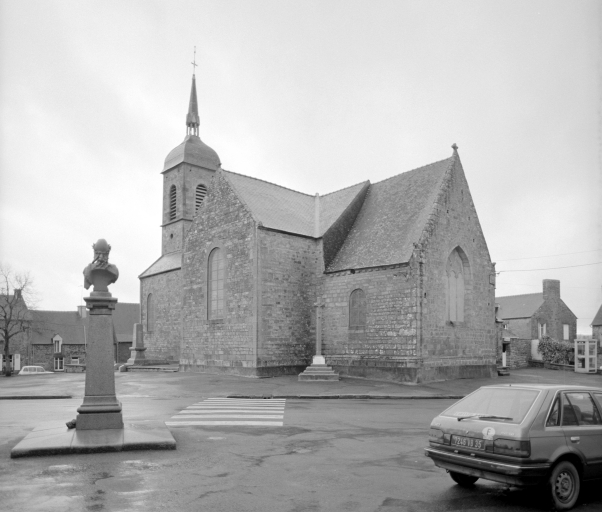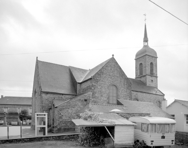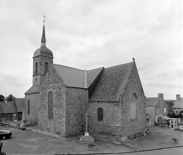 L'église paroissiale Notre-Dame fut reconstruite au 19e siècle. Celle qu'elle a remplacée, et dont le chevet droit a seul été conservé, devait remonter en partie au 15e siècle, car la grande fenêtre, ensuite murée, du chevet, est de style flamboyant. On remarque aussi dans le choeur une jolie crédence de même style et des sablières sculptées avec assez d'élégance. Ce choeur de la 2ème moitié du 15e siècle, fut restauré par André Basbois en 1776. La croix monumentale située à l'angle du choeur et du bras sud date également du 15e siècle. Cette ancienne église consistait en une seule nef, avec une chapelle latérale au Nord. Sur la façade étaient plusieurs écussons en relief aux armes des sires du Boisbaudry ; quant à la chapelle, elle était prohibitive au seigneur de Rimou, qui y avait son enfeu. Mais ces prééminences d'église étaient disputées au seigneur de Rimou par celui du Boisbaudry. En 1684, Renée Le Pappe, veuve de François du Boisbaudry, seigneur dudit lieu et de Trans, déclara qu'il lui appartenait, « à cause de ladite seigneurie du Boisbaudry, les droits de haute justice avec gibet à la Guilambert, cep et pilori au bourg, banc, pierres tombales et enfeus prohibitifs armoriés de ses armes, et droit de prééminence en l'église de Rimou ». En 1723, Marc-Antoine du Boisbaudry obtint même un arrêt en faveur de ses prétentions contre Renée de Sévigné, dame de Rimou et de Montmoron, femme d'Emmanuel du Hallay. A noter que l'église du 15e siècle avait été reconstruite suite à un incendie.