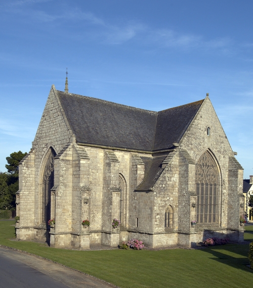 À côté des oratoires fermés, le plus souvent dépourvus d’autel, qui dissimulent leurs occupants aux regards des autres fidèles et demeurent en dehors de l’espace intérieur de l’église ou de la chapelle, s’impose progressivement, au cours du XVe siècle l’intégration dans le programme architectural de véritables chapelles privatives qui témoignent d’une évolution de la pratique religieuse et d’une mise en scène du paraître nobiliaire. Ces chapelles installées dans des ailes perpendiculaires ou parallèles au vaisseau principal, et largement ouvertes sur le chœur par une arcade sont pourvues d’un autel où officie un chapelain attitré. Attestée en 1365, la chapelle des Beaumanoir, sur le flanc sud de l’église de Lehon, semble une des plus anciennes. Dans l’église des Iffs, l’ancien oratoire des seigneurs de Montmuran, au nord du chœur, est à l’origine fermé et accessible par une porte en arc segmentaire caractéristique des années 1400. Vers la fin du XVe siècle ou le début du XVIe, lors d’importants travaux faits dans l’église, l’ancien oratoire est ouvert directement sur le chœur par une large arcade et l’ancienne porte reconvertie en accès à la sacristie contiguë. L’exemple comme auparavant vient de haut : la chapelle ducale bâtie par Jean V contre le bas-côté nord de la cathédrale de Tréguier, auprès du tombeau de saint Yves, ouvre largement par trois arcades sur la nef. À Runan, la chapelle jouxtant le porche sud, appelée chapelle de la Commanderie, est aussi probablement réservée au duc ou à son représentant local, comme l’indiquent les armoiries étalées sur son pignon. Les belles piles ornées de pampres qui la cantonnent devaient matérialiser, dans un espace homogène et largement ouvert, avec le complément d’une clôture disparue, l’enclos réservé de la chapelle ducale. Au sud du chœur de Notre-Dame de la Clarté à Perros-Guirec, la chapelle de la famille de Lannion ouvre par une haute arcade flanquée d’une porte surmontée d’armoiries qui n’a d’autre fonction que de marquer symboliquement et fortement l’accès à cet espace réservé. Dans la chapelle Notre-Dame-de-Bon-Encontre, construite par Alain IX de Rohan en 1510, l’oratoire seigneurial chauffé ouvre sur le chœur par une large arcade qui a conservé sa clôture en bois ouvragée de style flamboyant. Sur un mode plus humble, la chapelle Saint-Adrien en Scaër possède également la claire-voie en bois séparant le chœur de l’oratoire des seigneurs de Quimerc’h. Enfin dans les chapelles de Saint-Colomban à Carnac, de Saint-Fiacre à Radenac ou de Saint-Barthélémy à Pleucadeuc, l’étonnante juxtaposition d’hagioscopes* et de grandes arcades largement ouvertes sur le chœur s’explique par la liturgie : à l’instar de nombreux spécimens conservés dans les églises anglaises où ils sont appelés squint (littéralement « coup d’œil »), ces hagioscopes* percés au droit de l’autel secondaire permettaient au chapelain de suivre le déroulement de la liturgie sur l’autel principal.