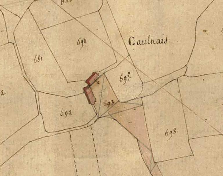 Un premier bâtiment en pierre et terre a été construit au XVIIe siècle orienté est-ouest. Une habitation est construite plus tard mais est déjà présente sur le cadastre de 1835.