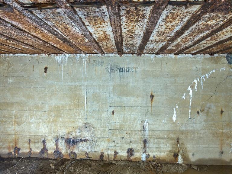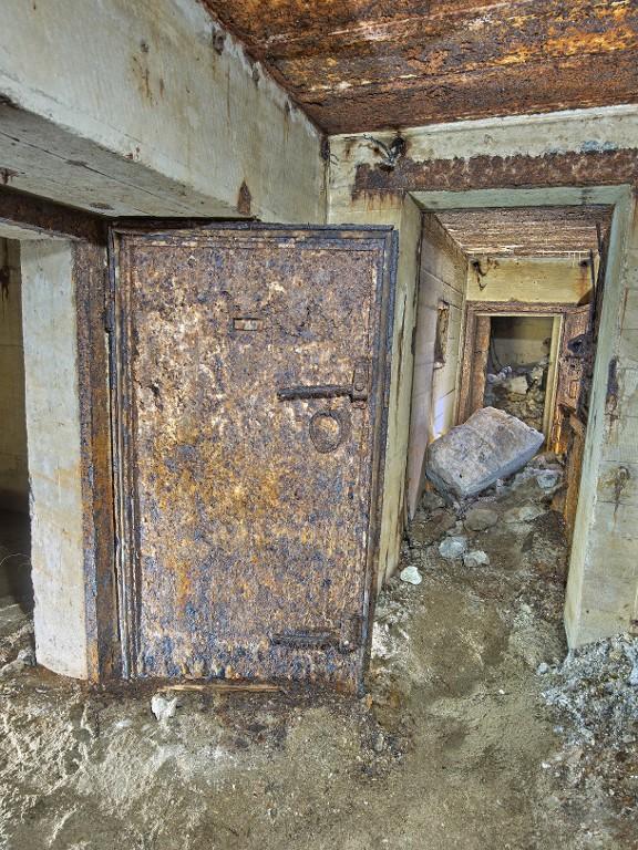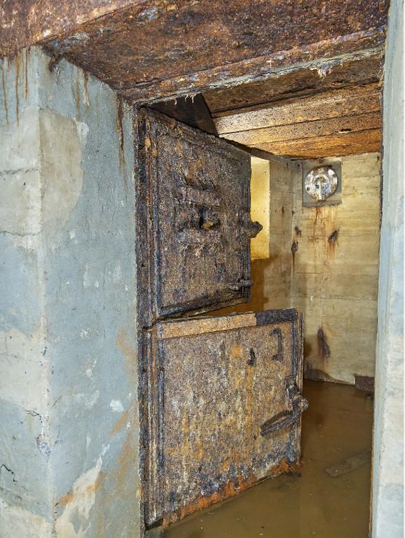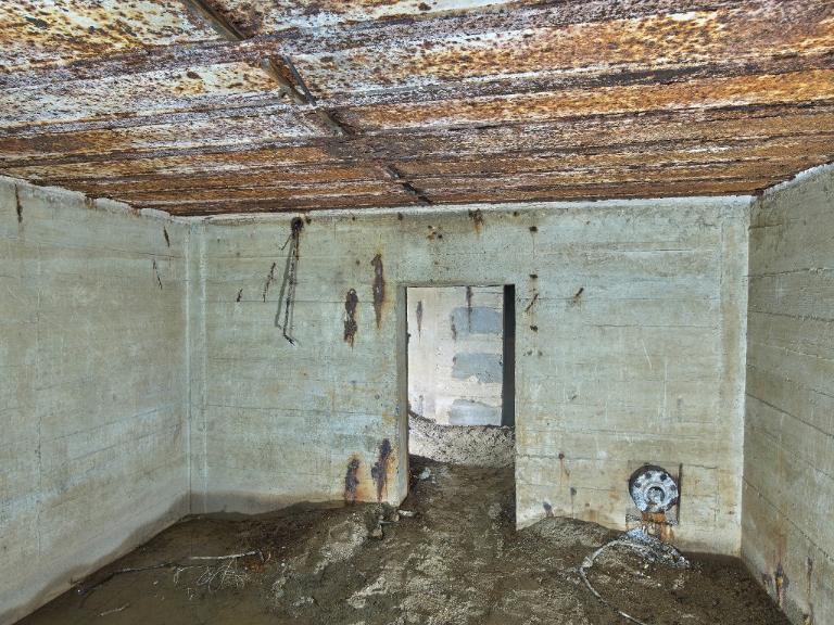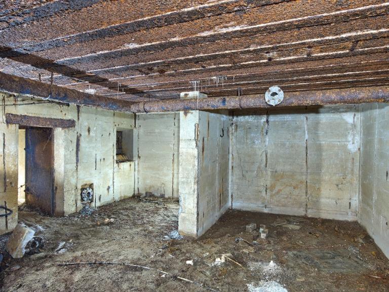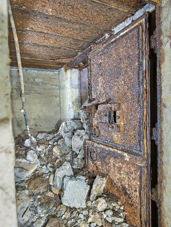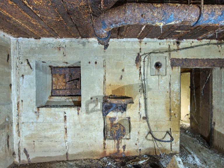 Dans le magasin à munitions, sur le mur sud (à gauche en entrant), au niveau du plafond : peinture murale de couleur noire figurant une araignée sur sa toile entourée d'une inscription en lettre gothique : "Eïner / immer" (traduction littérale : Un / toujours).