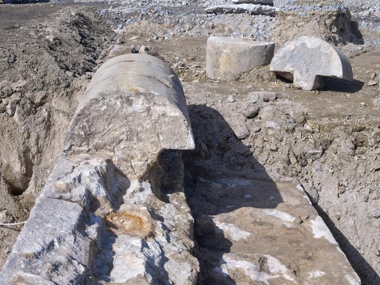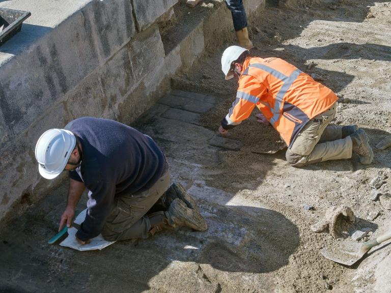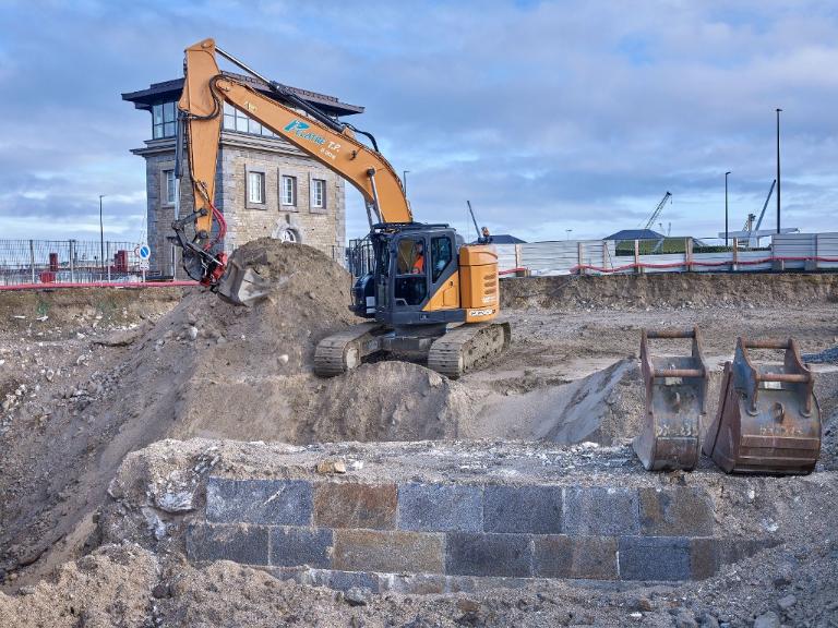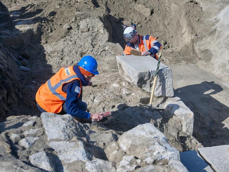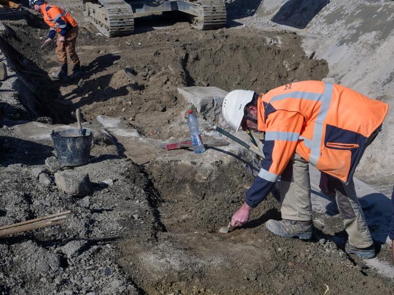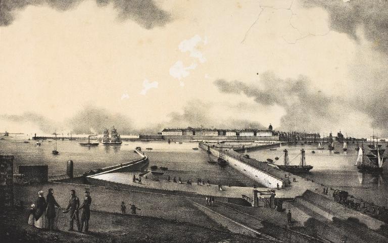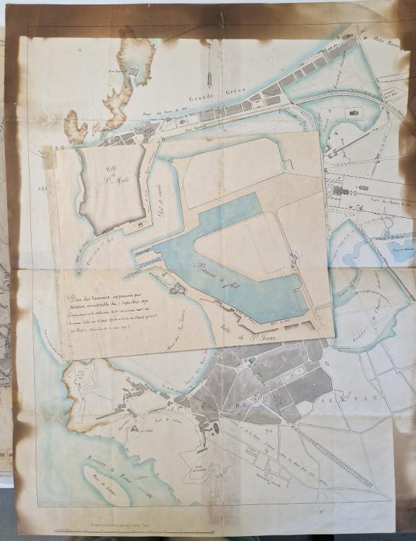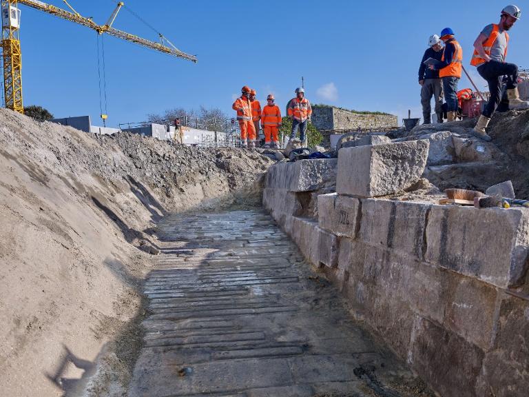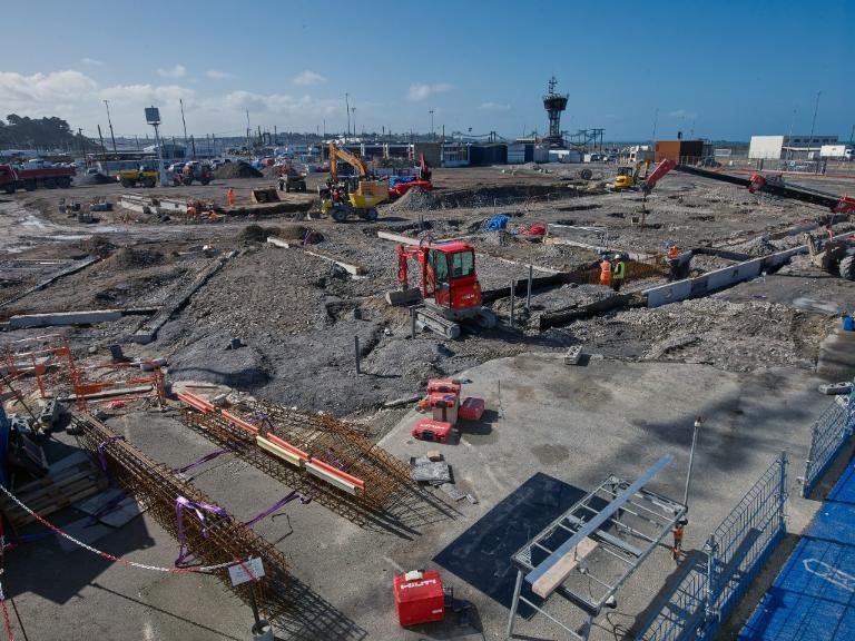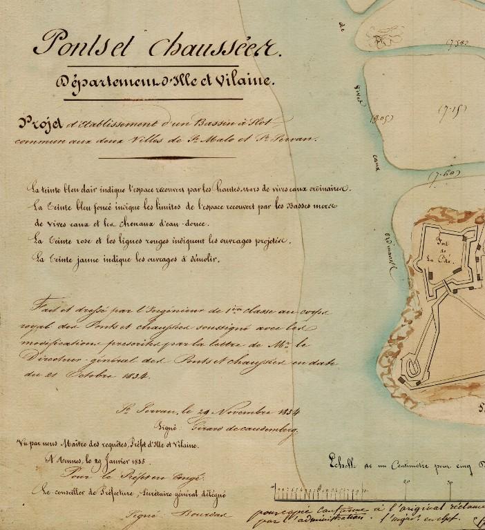 Datant des années 1837-1839 et remblayée en 1929 lors de la construction de la grande écluse du Naye, la digue de l’avant-port de Saint-Servan est ressortie partiellement de terre en novembre 2025 et en février 2026 lors des travaux de la nouvelle gare maritime du terminal Ferry du Naye. Le chantier a permis de documenter la démolition partielle de la digue de l’avant-port lors de la construction de l’un des bunkers de la batterie antiaérienne lourde du Naye durant la Seconde Guerre mondiale.