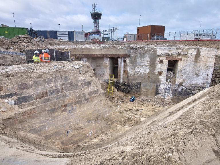 Datant des années 1837-1839 et remblayé en 1929 lors de la construction de la grande écluse du Naye, l’avant-port de Saint-Servan est ressorti partiellement de terre en 2025 lors des travaux de la nouvelle gare maritime du terminal Ferry du Naye. Le chantier a permis de documenter la démolition partielle du quai de l’avant-port lors de la construction de l’un des bunkers de la batterie antiaérienne lourde du Naye durant la Seconde Guerre mondiale.