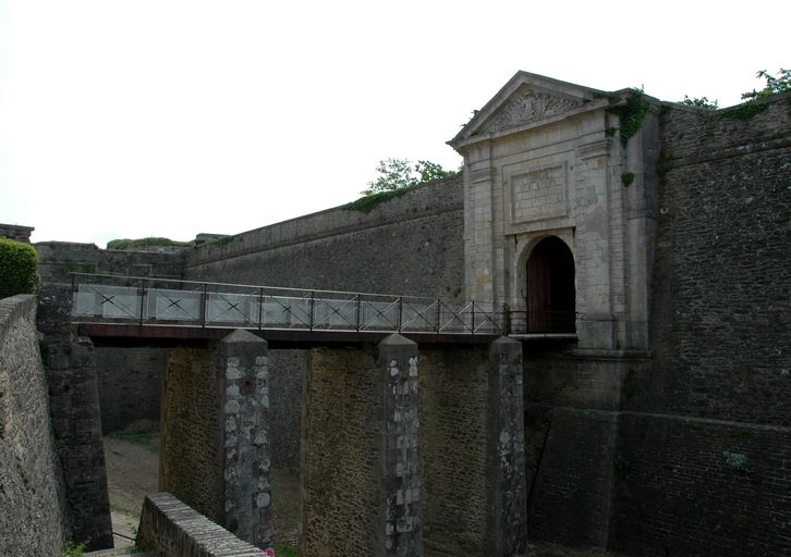 Ayant passé la porte du Bourg, il faut longer les flancs des bastions du Dauphin et de Saint-Louis défendus par des casemates de tir flanquant les fossés pour pénétrer dans le corps de place par la porte dite du Donjon. Cette nouvelle porte monumentale avec pont-levis à bascule (1698) remplace l'ancienne (de 1683-1685) jugée disgracieuse. Au 18e siècle, les travaux d'achèvement de la citadelle se poursuivent avec la construction du Grand Quartier sur l'enceinte côté mer...