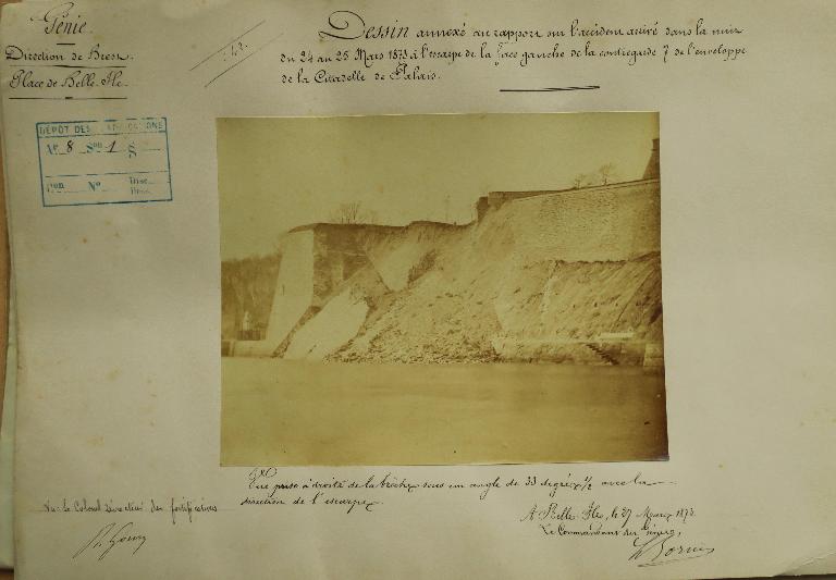 La face gauche de la contregarde 7 s'effondre en mars 1873. Elle est reconstruite sous la forme d'un plan incliné terrassé.