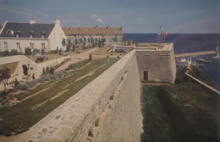 "Le XIXe siècle, outre le haha du front du port et les casernements à l'épreuve du front nord, fut caractérisé par l'apport massif de terre, destinée à dissimuler les défenseurs des tirs en trajectoire. La suppression des crêtes de feu du corps de place et de l'enveloppe, dans les aménagements actuels, ne permet plus une lecture cohérente de l'organisation défensive du XIXe siècle" (BAUDRY, Marie-Pierre, FAUCHERRE, Nicolas, La citadelle de Belle-Ile, In CONGRES DE L'ASSOCIATION VAUBAN (5,6,7 mai 1989), Vauban à Belle-Île, Trois cents ans de fortification côtière en Morbihan, Le Palais, Éditions Gondi, 1990, p. 51-70, p. 60).