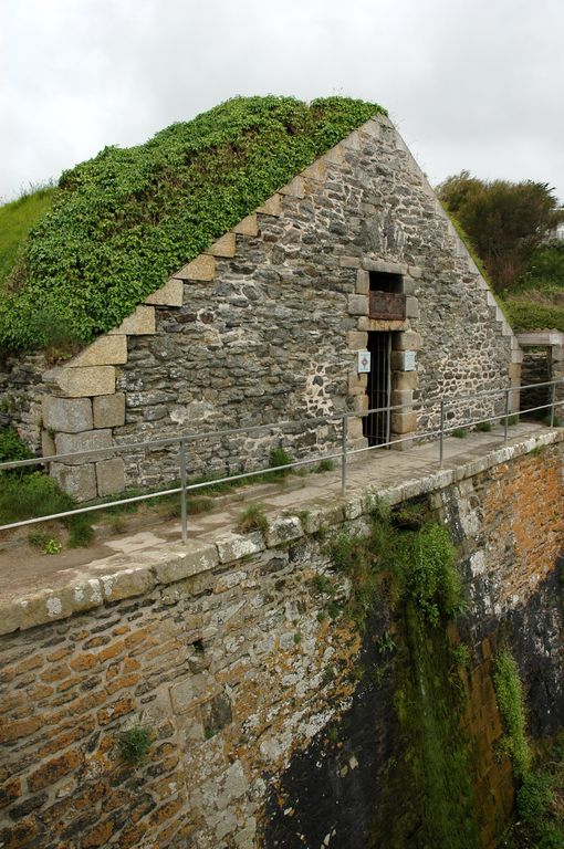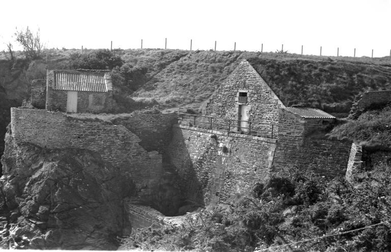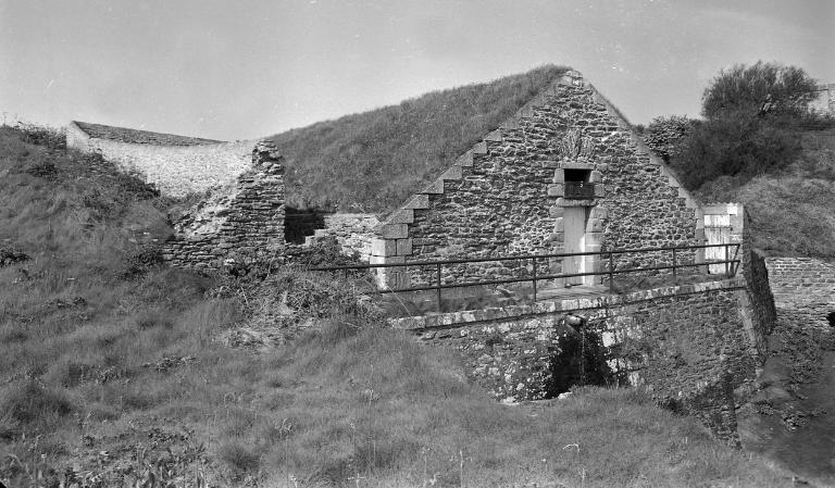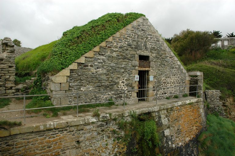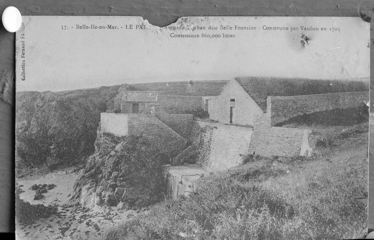 La Belle-Fontaine est un ouvrage militaire côtier qui renferme une citerne contenant environ 900 m3 d' eau, dont la construction a vraisemblablement été décidée par Vauban pour que les vaisseaux de la Flotte puissent aisément se ravitailler en eau douce. C'est une construction de moellons de forme rectangulaire, couverte à deux pentes revêtues de terre et de végétation herbeuse. Elle renferme une salle voûtée qui constitue la réserve d' eau elle-même. Un mur de clôture peu épais en moellons ceinture le bâtiment. Face à la mer, le mur de retenue des eaux de la citerne descend jusqu'à une terrasse située à quelques dizaines de centimètres du niveau de la pleine mer. Des coups de sabre dans la maçonnerie laissent présumer d'anciennes dispositions, des reprises ou des modifications de construction. La terrasse basse est appuyée sur un mur de défense contre la mer formant quai, de telle sorte que de petites embarcations puissent accoster à marée haute. Deux conduits en pierre taillée saillant du mur sont constamment alimentés en eau douce afin de permettre le remplissage des barriques. Le mode de construction du mur de défense contre la mer est remarquable : la maçonnerie de pierre de taille est ancrée au pied de la falaise par une série de pieux horizontaux. Après enfoncement des pieux, les trous furent oblitérés par des bouchons de pierre dont certains subsistent. Les joints et scellements sont réalisés avec un mortier étanche à base de chaux et de terre cuite pilée.