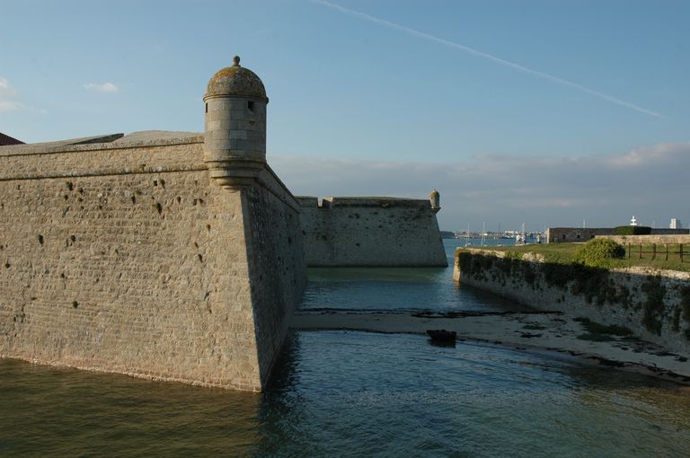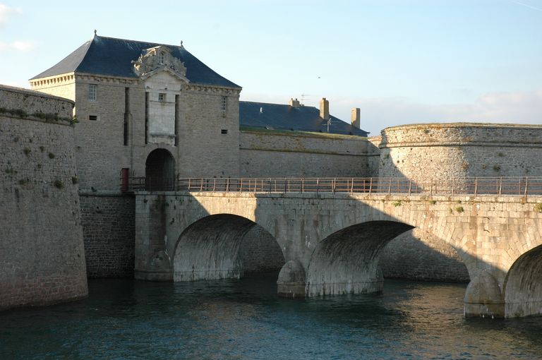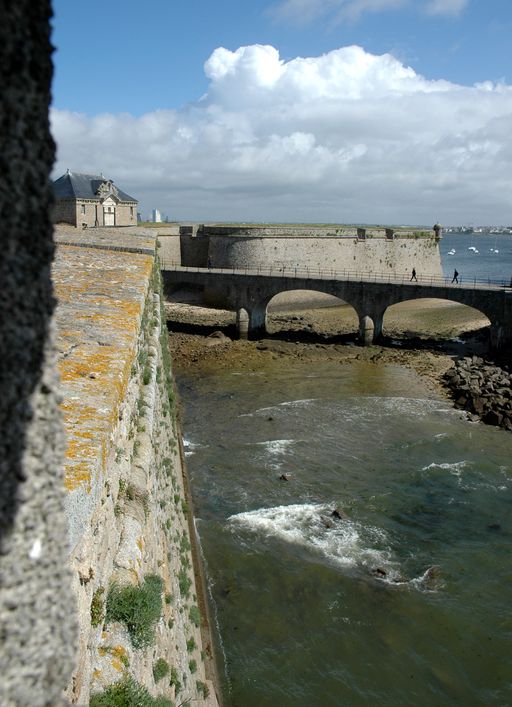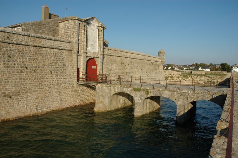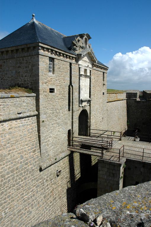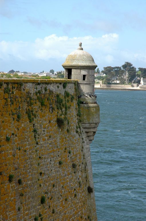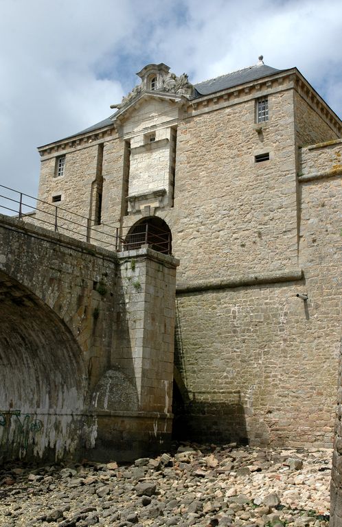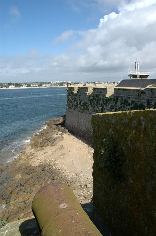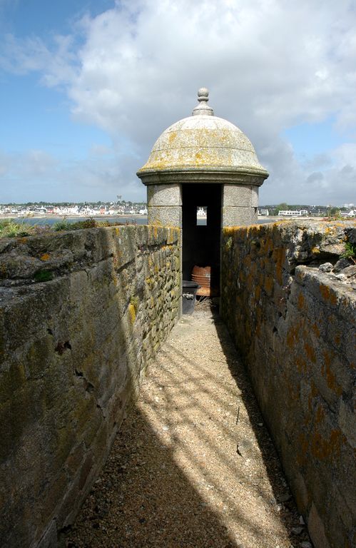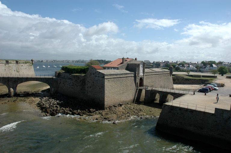 Vauban visita la citadelle et l'enceinte urbaine de Port-Louis au printemps 1683 : ses critiques sont nombreuses quant à la qualité des flanquements de l'ouvrage qu'il nomme : "château". Mais il conclut : "La situation est si avantageuse d'elle-même qu'elle efface tous les défauts". Ainsi, l'ingénieur se contenta de tracer pour la citadelle les plans d'un grand magasin à poudre, clos d'un mur de précaution et d'un arsenal protégé des coups du large par l'enceinte.. et proposa de "raccommoder" par endroits la place. Vauban, pour la gloire du Roi-Soleil (propagande et magnificence obligent) fit aussi ajouter des trophées au fronton surmontant la porte du corps de place et des échauguettes à fleur de lys. Hue de Luc, ingénieur, était en charge de la place de Port-Louis en 1684 et 1685.