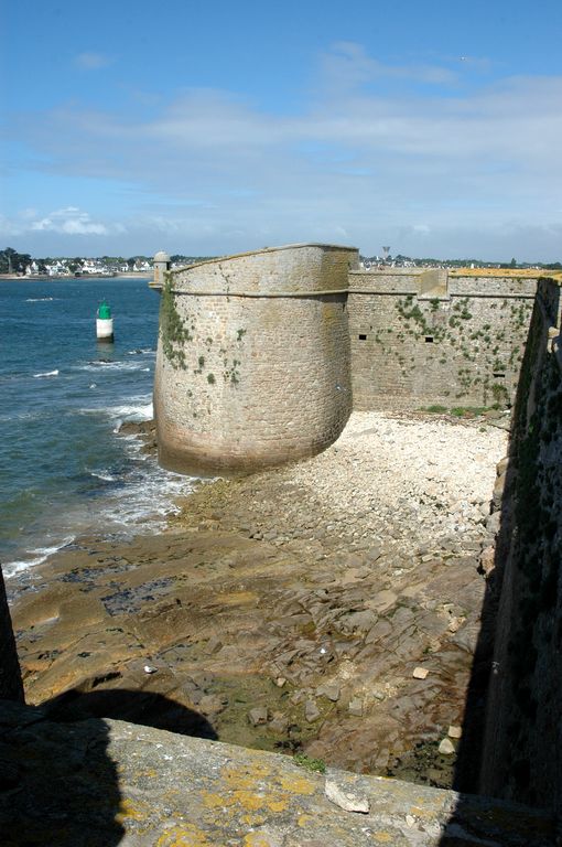 Vauban visite la citadelle et l'enceinte urbaine de Port-Louis au printemps 1683 : ses critiques sont nombreuses qu'en à la qualité des flanquements de l'ouvrage qui'il nomme : "chateau". Pour Nicolas Faucherre, la citadelle est un "monument important, où la part de Vauban est minime". Voir aussi notices Mérimée PA56000022, PA56000023, PA56000024 et PA56000025.