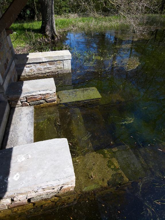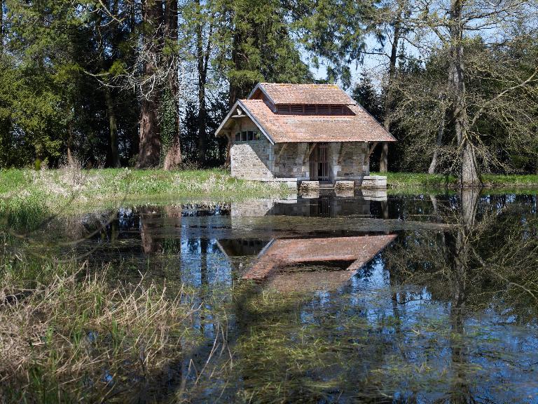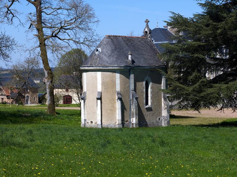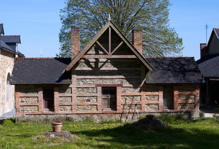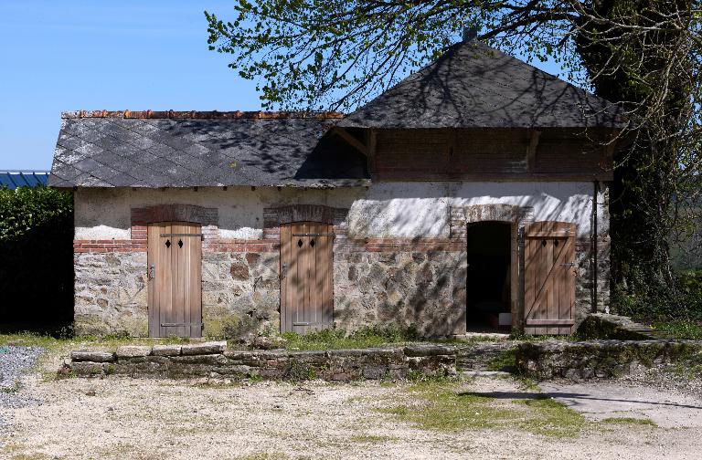 Une série de bâtiments accompagnent le logis : la chapelle de style néo-roman, dont les plans sont signés de Dupuis en 1877, les communs qui occupent la place de l’ancien logis, et surtout le lavoir dû à Langanry, remarquable construction de style pittoresque avec buanderie et séchoir bordant la pièce d’eau.