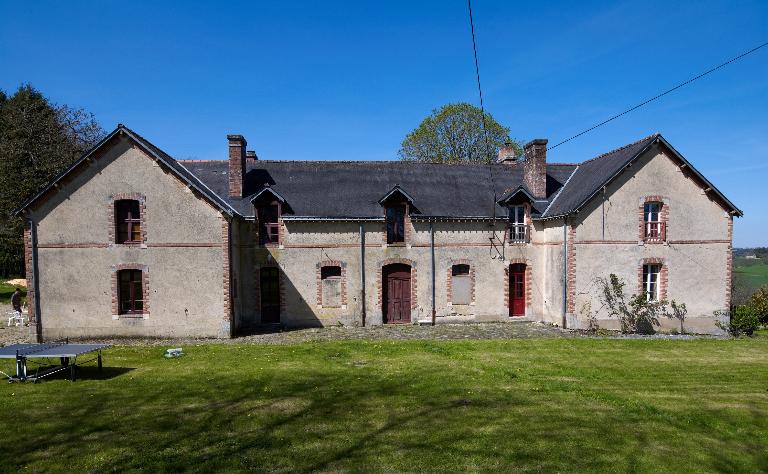 Tranchant sur les constructions locales par son ampleur, le logis l’est aussi par le choix du matériau, une pierre calcaire blanche dite pierre de Crazanne provenant de Charente maritime, dont le transport a été assuré par péniche sur le canal de Nantes à Brest. Seul le soubassement est traité en pierre de taille de granite.