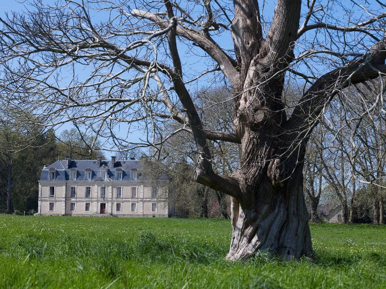La conception du château au XIXe siècle diffère de celle des siècles précédents ; ainsi le décrit-on dans « la Vie à la campagne » : « un château solidement campé sur sa colline (…) avoisiné d’arbres séculaires… ». L’ancien logis est donc détruit et le nouveau déplacé au sommet du coteau d‘où il domine le parc, mais aussi la vallée de la Claie, afin de voir et d’être vu. Traitée dans un style classique, la façade principale se développe sur sept travées, l’accent étant mis sur les travées extrêmes, en saillie, et surtout sur la travée centrale soulignée par un fronton, une lucarne plus développée, et le perron d’accès à la porte d’entrée ; participant à la mise en valeur de l’entrée, ce perron s’explique aussi par l’existence du sous-sol à demi-enterré dans lequel sont logées depuis le 18e siècle dans les châteaux, les pièces de service : cuisines, fruitier, salle-à-manger des domestiques. Sur la façade postérieure, ce sont les trois travées centrales qui forment avant-corps pour accueillir le grand escalier.