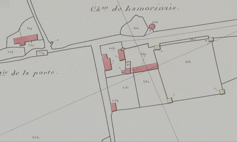 Nommés « Château de la Morinais » sur le plan cadastral de 1824, propriété de M. Corvoyer, les bâtiments de l’ancien manoir s’organisent autour de plusieurs cours et d’un jardin carré cantonné de pavillons ; le logis, orienté au sud, est au centre de la composition, les communs tout proches avec four à pain à l’ouest. Au nord de la route, sont le colombier et la métairie de la Porte, mentionnée dans la réformation de 1666.