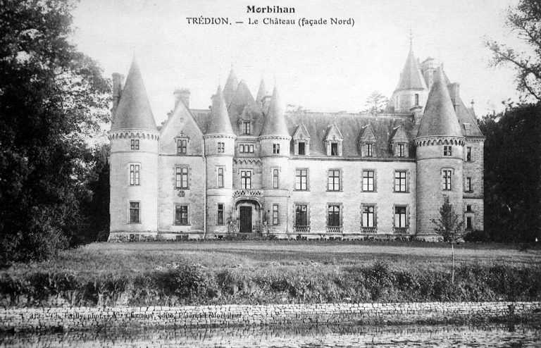 Morbihan. TRÉDION.- Le château (façade Nord) . Ch. Bailly, phot.- Vve Chamarre, rue de la Gare, Ploërmel (Morbihan) (A.D.35, 6 Fi Trédion).