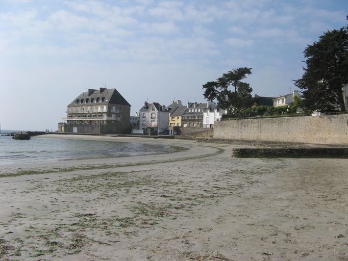 - RECO Le front balnéaire de la plage de Toulhars est hétérogène dans ces périodes de construction, mais finalement homogène pour les volumes et les hauteurs des bâtiments. Le site a commencé à être urbanisé au 19e siècle avec l´essor de la pêche et de l´industrie de la conserverie, puis, à partir de la fin du 19e siècle, suite au développement balnéaire de Larmor-Plage. Les espaces dévolus à la pêche ont été progressivement reconvertis au profit de l´activité balnéaire. L´ensemble est protégé en partie par les abords de l´église Notre-Dame-de-Larmor, monument historique classé (périmètre de 500 mètres autour de ce monument). Il convient néanmoins de veiller à conserver l´homogénéité des volumes et des hauteurs de ce front balnéaire. Il importe de prodiguer des conseils, voire d´accorder des aides, au fur et à mesure des demandes, pour une restauration harmonieuse des villas, en tenant compte de leur style d´origine. Compte tenu de l´intérêt évident des villas datant du tournant 19e-20e siècles, l´attention doit être aussi portée sur les villas plus récentes, de l´Entre-deux-guerres et des années 1950. Le lancement d´un programme de rénovation des façades des villas plus ordinaires du front de mer contribuerait à conforter l´aspect relativement homogène du front balnéaire de la plage de Toulhars. Pour éviter une banalisation des lieux, il serait souhaitable de protéger la partie est du front balnéaire, à proximité de la pointe de Toulhars, où se trouvent encore quelques belles villas et de grands parcs arborés. Les traces de l´activité de la pêche doivent être valorisées. Plusieurs éléments isolés demeurent à proximité de la plage de Toulhars sans que ne soit rappelée leur histoire particulière. Sont recommandés l´entretien de ces héritages, dont certains sont sur la plage de Toulhars, et la signalisation de l´histoire de la pêche sardinière en lien avec ces éléments.