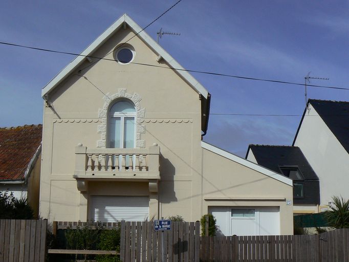 Cette villa, bien que reconstruite, est caractéristique des maigres réalisations d´un grand projet urbanistique. Bien que située à plus d´une centaine de mètres de la plage, cette villa de deux étages, de forme rectangulaire, est en première ligne des constructions du quartier balnéaire de Lorient-Plage, rebaptisé depuis Kerguélen-Plage. La façade qui donne sur la mer est la plus travaillée, avec de belles ouvertures. Le rez-de-chaussée profite d´une large baie, le premier étage dispose d´un balcon massif et ouvragé, avec balustrade, et d´une porte-fenêtre avec imposte de baie, les combles sont éclairés par un oculus. Des moulures parcourent cette façade et l´encadrement de la porte-fenêtre est en pierre de taille peinte de couleur plus claire que les murs. Une petite souche de cheminée, avec ses deux mitrons, émerge du toit en tuile. Adossée à ce bâtiment, une autre construction de plain-pied (augmentation de 1956 ?), difficilement visible de la rue, s´ouvre sur le jardin. De forme carrée, avec une autre petite souche de cheminée, elle n´a pas fait l´objet de rénovation récemment. La villa est jouxtée d´un appentis qui sert de garage. Relativement modeste, son architecture est caractéristique de celle des petites villas construites dans le quartier balnéaire de Kerguélen-Plage.