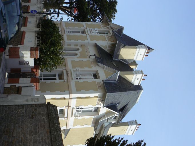 - RECO Cette villa, d´un grand intérêt patrimonial (à la fois par son histoire et son architecture), est située dans le périmètre de protection de l´église Notre-Dame-de-Larmor, classée aux Monuments Historiques. Elle est donc un peu moins menacée par d´éventuelles transformations que certaines autres villas pourraient l´être. Sur le POS de la commune de Larmor-Plage, elle est reconnue comme immeuble remarquable. Elle a été récemment rénovée. Il importe également de sensibiliser à l´intérêt paysager de cette villa et de faciliter à l´avenir, éventuellement par des conseils ou des aides, un entretien soigné de la façade, respectueux de ses caractéristiques originelles.