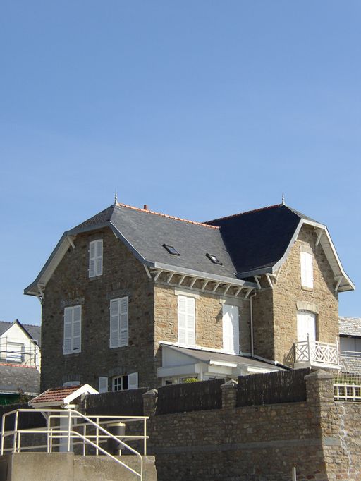 La propriété, surélevée par rapport à la mer, est composée de deux bâtiments. La villa principale est proche de la mer. Sur deux étages, dont un sous combles, l´architecture de cette villa d´un volume important est austère. Le côté droit de la façade principale est légèrement avancé et forme pignon en façade. La vue sur mer est privilégiée, grâce à une véranda fermée au rez-de-chaussée et un balcon avec balustrade en bois blanc au premier étage. Les murs sont en moellons, les toits retroussés en ardoises. Le deuxième bâtiment, construit plus tardivement, en 1921, est adossé au boulevard des Dunes qui passe derrière la propriété. D´une architecture simple, cette habitation d´un étage et de base rectangulaire ne sert probablement que l´été (il s´agissait peut-être des logements pour le personnel). Le rez-de-chaussée est utilisé comme garage pour les voitures et hangar. On accède au couloir extérieur de l´étage par un escalier droit. Le rez-de-chaussée est aujourd´hui de couleur blanche, l´étage de couleur verte.
