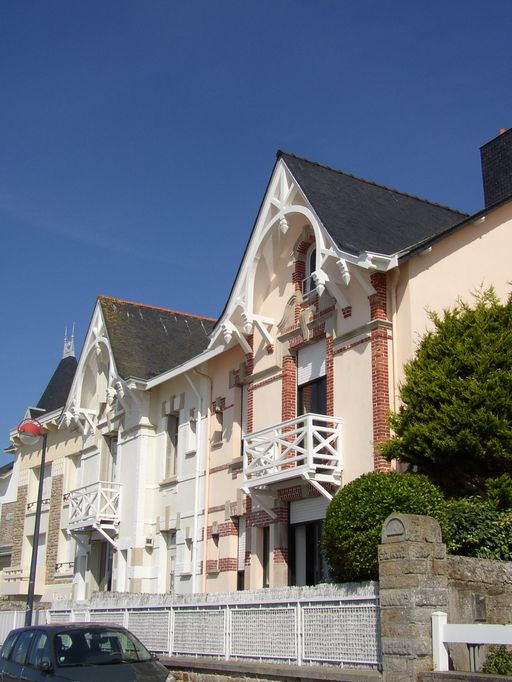 - RECO Cette villa, d´un grand intérêt patrimonial (à la fois par son histoire et son architecture), sont situées dans le périmètre de protection de l´église Notre-Dame-de-Larmor, classée aux Monuments Historiques. Elle est donc un peu moins menacée par d´éventuelles transformations que certaines autres villas pourraient l´être. Sur le POS de la commune de Larmor-Plage, elle est reconnue comme immeuble remarquable. Il importe également de sensibiliser à l´intérêt paysager de cette villa et de faciliter, éventuellement par des conseils ou des aides, un entretien soigné de la façade, respectueux de ses caractéristiques originelles.