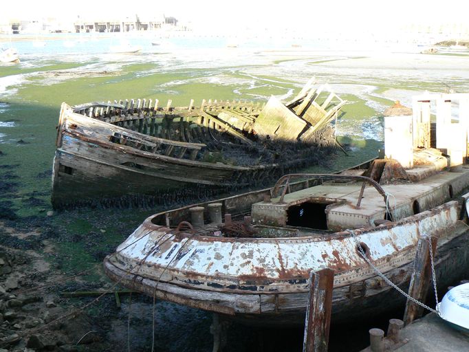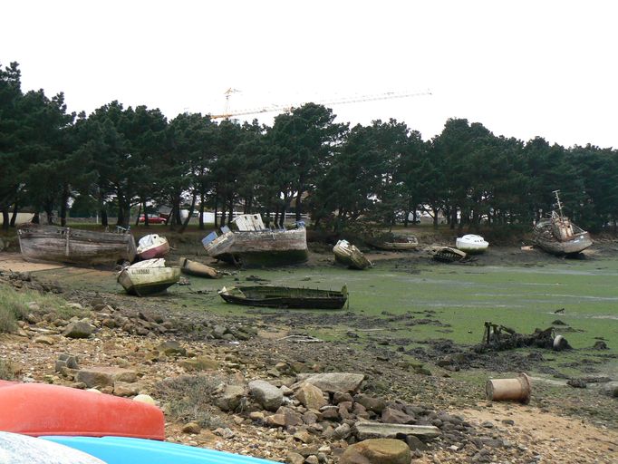 - RECO Le cimetière de bateaux se situe sur la vasière, à proximité d´un chantier naval et en partie en lisière d´un espace boisé classé ou à classer selon le POS de Larmor-Plage. Il convient de laisser ces épaves disparaître naturellement.