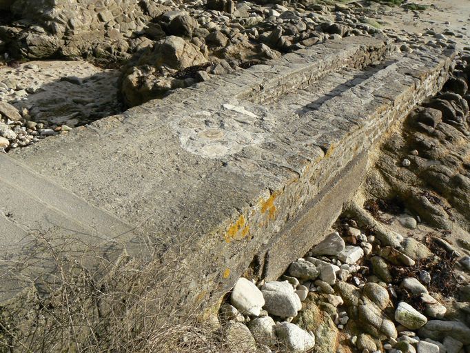 - RECO Dans l´attente d´une éventuelle réfection, veiller au maintien des pierres de taille apparentes et limiter les colmatages d´urgence à l´aide de ciment qui pourraient peu à peu créer une situation irréversible. Cette rampe rappelle l´histoire maritime ancienne de Larmor-Plage, en lien avec le fort de Locqueltas. Avec la bitte d´amarrage contiguë, elle pourrait devenir une étape du circuit de découverte pédestre axé sur la défense de la rade de Lorient, au 17e siècle, 18e siècle et durant la Seconde Guerre mondiale.