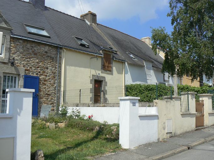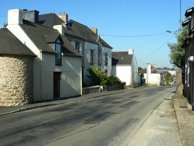 Les villages de Cadouarn, Kerdavid et Le Ranquin ont grossi en lien avec l´accroissement rapide de l´activité de pêche à la fin du 19e siècle et au début du 20e (le nombre des maisons a quasiment doublé entre 1841 et 1896). Leur architecture qui date majoritairement de cette époque est donc relativement similaire. La rue de Cadouarn qui descend directement vers la grève qui servait autrefois de port d´échouage, en offre un très bel exemple. Bordée de chaque côté par un alignement régulier de maisons construites pour les familles de pêcheurs, cette rue est typique des lotissements populaires des années 1900. Les maisons, généralement de petite taille, séparées de la rue par un minuscule jardinet, se composent d´un rez-de-chaussée et d´un étage sous combles. La façade, généralement crépie, présente une porte et souvent une unique fenêtre, et un grenier éclairé par une lucarne pendante - aussi appelée gerbière (ouverture au niveau du toit, dans le prolongement du mur de façade) - surmontée d´un fronton triangulaire en pierre. Le jardin arrière, qui permettait aux pêcheurs de cultiver quelques légumes, a souvent disparu (vente du terrain). L´aspect extérieur de ces maisons commence néanmoins à être notablement modifié afin de les adapter au goût et au mode de vie de leurs nouveaux habitants : élargissement des lucarnes, percement de nouvelles ouvertures, pose de crépi coloré, adjonction de clôture fantaisiste, construction de petites remises.