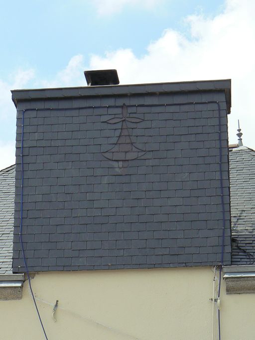 La maison se distingue tout d´abord par une petite tour de plain-pied en pierre apparente et toit en ardoise. Cet élément est l´une des trois parties de la maison : à l´est cette tour, au centre dans l´alignement de la tour une construction récente d´un étage sous combles à la façade crépie très épurée, donnant directement sur la rue et par où se fait l´entrée, et à l´ouest une construction de deux étages dont un sous combles, en retrait de la rue, avec une façade principale en pierres apparentes. L´architecture de la construction à l´ouest est classique, avec un toit en pavillon en ardoise, un oeil-de-boeuf pour éclairer les combles et quatre larges ouvertures en arc bombé (l´une des ouvertures du rez-de-chaussée, sans barre d´appui, était peut-être une porte, aujourd´hui transformée). Enfin, sur une large souche de cheminée couverte d´ardoise émergeant du toit, se dessine en relief le symbole d´une hermine.