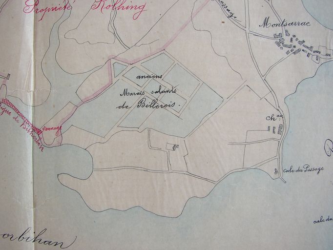 Archives départementales du Morbihan. Série, S1568 Plan joint au rapport du conducteur des P et C sur la demande présentée par divers habitants de Séné, du 28 septembre 1912.