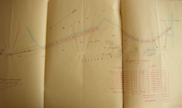 Archives départementales du Morbihan. Série 4 S 1193, Plan pour la concession d´un terrain maritime près du Passage Saint-Armel, construction du chemin de petite communication n°3, du 8 janvier 1894.
