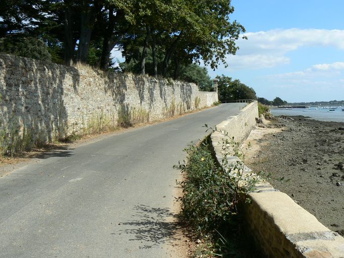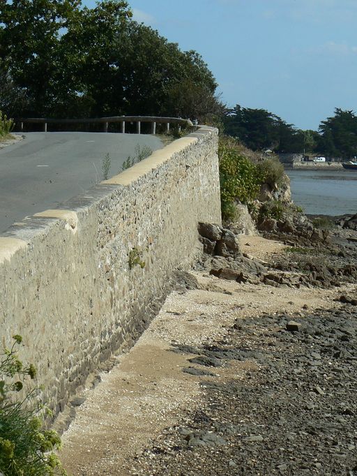 La digue-route se compose de deux parties, de par et d´autre d´une pointe surélevée. La construction de cet ouvrage a suivi les murs du château de Bot-Spernen déjà construits en 1897. A certains endroits, la largeur du passage était inférieure à deux mètres, ce qui explique la nécessité d´empiéter sur le domaine publique maritime. L´ouvrage permet la constitution d´une route de quatre mètres de largeur. L´ensemble est long d´environ 350 mètres : 174 mètres pour la première partie rectiligne, qui part du sud de Montsarrac, 182 mètres pour la seconde de forme courbe, qui rejoint le Passage Saint-Armel. Le perré de la première partie, contre lequel se trouve une slikke (partie basse des vasières littorales, recouverte à chaque marée), se situe à environ un mètre du niveau de la mer du côté de Montsarrac. Il s´agit d´un perré incliné, en pierre, reposant sur un talus d´un mètre d´épaisseur. En allant vers le passage Saint-Armel, la route s´élève progressivement pour atteindre une hauteur d´environ trois mètres par rapport à la mer. La hauteur du perré de la seconde partie, battu par les eaux, est d´environ trois mètres. Il s´agit d´un perré droit en pierre, surmonté d´un muret en maçonnerie haut de cinquante centimètres.