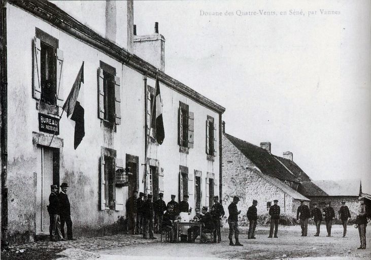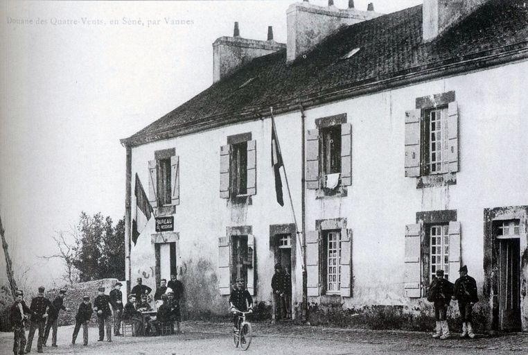 Sous l´Empire, l´administration décide de se préoccuper du recouvrement de l´impôt sur le sel. La Bretagne étant exemptée de gabelle sous l´Ancien Régime, l´Etat doit entièrement organiser le service des douanes et construire des logements pour l´accueillir. A Séné, bourg gros producteur de sel, trois casernements principaux sont installés. La caserne des douaniers des Quatre-Vents, avec le bureau du receveur général, est la plus importante. Elle est terminée en 1809. La caserne héberge 39 personnes en 1841, dont huit femmes et enfants - Séné compte à cette époque 98 douaniers, pour 91 paludiers. La crise salicole qui s´installe au cours du siècle réduit cependant progressivement le nombre de douaniers. La caserne de Billorois, sur l´île de Mancel, est abandonnée, puis détruite en 1879. A la fin du 19e siècle, une vingtaine de personnes vit encore dans la caserne. Au cours de l´Entre-deux-guerres, la caserne est abandonnée : en 1931, selon le recensement, il n´y a plus de douanier aux Quatre-Vents. Elle est vendue en 1935 à un vicaire de la région parisienne, Henri Viot, qui la transforme en colonie de vacances catholique. Le bâtiment accueille des réfugiés pendant la guerre, puis retrouve son statut de colonie de vacances une fois le conflit achevé. Il devient une maison d´habitation dans les années 1980. Aujourd´hui, cette ancienne caserne est la seule existant encore à Séné.