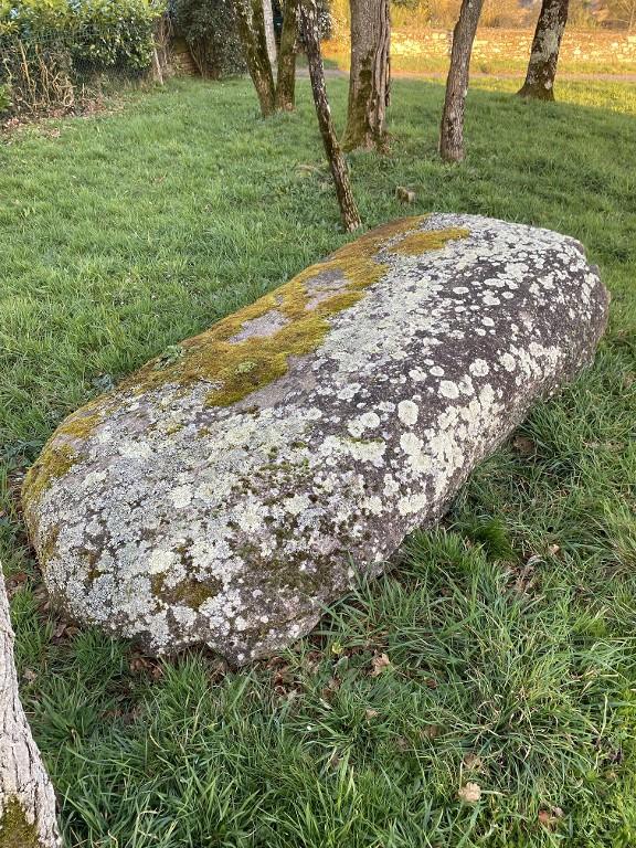 Le menhir est couché près de la chapelle Saint-Joseph.