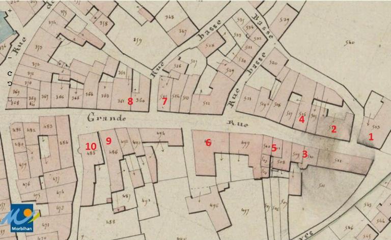 Malestroit. Cadastre napoléonien, section B2 de la Ville. Levée par M. Louaisel-Dupaty, géomètre du cadastre, 1829, échelle 1:2500 e.
