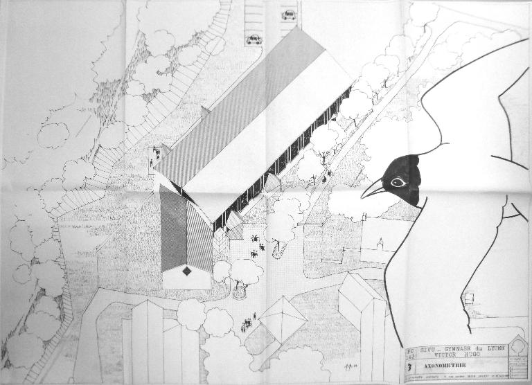 Comme l'indiquait l'architecte responsable des deux équipements, le gymnase a été conçu comme une annexe volontairement modeste du lycée voisin : découpe à l'identique des allèges, du mur périphérique, dessin des pignons rappelant le pignon de l'aile orange sur le parking des enseignants, simplicité du volume. Trente ans après son inauguration, l'absence d'un sol sportif dans la salle omnisports s'avère problématique.
