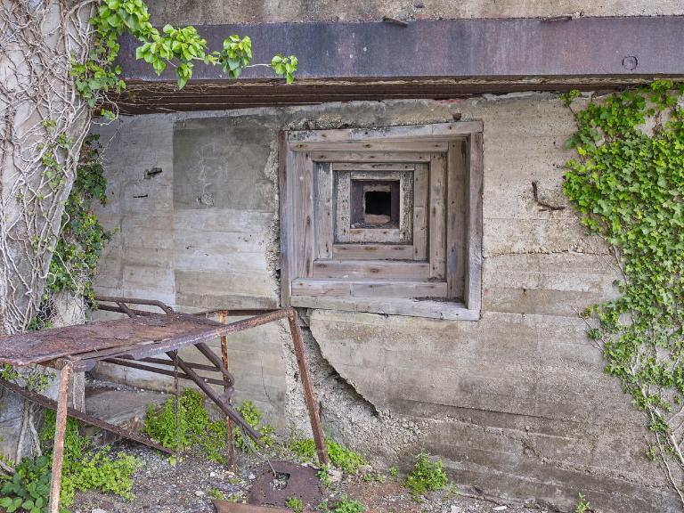 L’accès à la chambre de combat (Kampfraum) pour canon est contrôlé par une porte blindée étanche à deux vantaux. Son embrasure rectangulaire orientée vers le sud-est, permettait au canon de tirer en direction du chenal et de la partie centrale de la rade de Lorient. L’embrasure est protégée au sud par un mur de flanquement qui assurait sa protection latérale du côté de la mer.