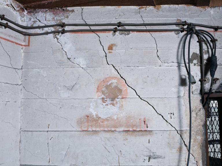 Ses murs comportent des marquages de tir et deux peintures de propagande nazie :